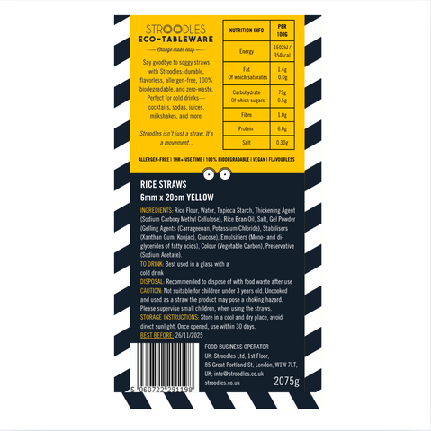 Say goodbye to soggy paper and plastic straws with Stroodles: a 1-hour+ durable, flavourless, allergen-free, 100% biodegradable, and zero-waste solution.